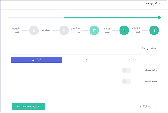 در زمینۀ ریتارگتینگ هم تقریباً این قضیه صدق میکند و به جز گزینۀ «هر مخاطب مجموعاً چند بار ریتارگت شود؟» سایر تنظیمات کاملاً یکسان هستند.